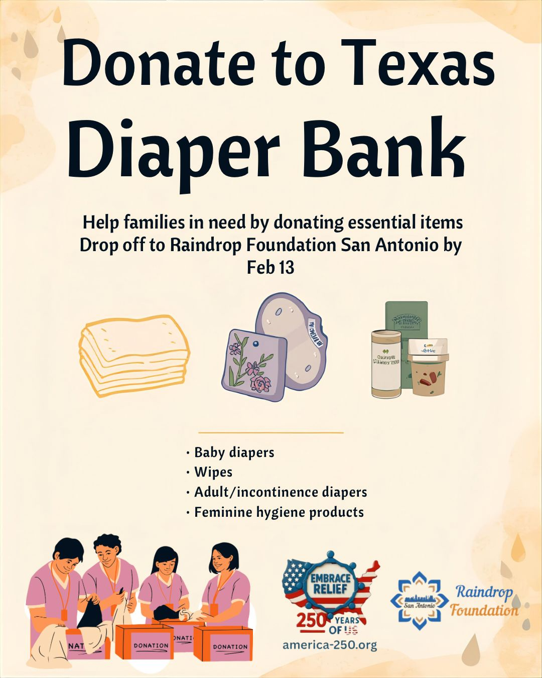 Raindrop Foundation San Antonio San AntonioTexas Diaper Drive 2026 Every family should have the supplies to take care of their babies and now, you can help! Between now and Feb. 13, Embrace USA Southwest and the […]